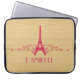 Eleganter und schicker französischer Blühtest Laptop Sleeve mit einem Imitat aus Holz Hintergrund und einem Eiffelturm Design in magenta mit Kaskaden von stilvollen Wirbel. Dieses mädchenhafte und trendige Design lässt sich leicht mit dem personalisierten Text Ihrer Wahl anpassen. Klicken Sie auf "Anpassen", um weitere Personalisierungsoptionen zu erhalten.