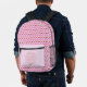 Dieser phantastische Rucksack weist ein Muster von hübschen Rosa Kirschblüten Blume auf, die auch Sakura und Japan genannt werden. Sie sind ein Symbol für den Frühling und ideal für eine Frühjahrshochzeit. Sie werden mit Paaren reifer, glänzender roter Kirschen vermischt. Es ist ein hellrosa Kreis mit weißen Marmormustern, der anpassbaren Text enthält, damit Sie dieses Design personalisieren können.