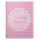 Dieses phantastische Hochzeitsplaner-Notizbuch zeigt ein Muster von hübschen rosa Kirschblüten Blume, auch Sakura und Japan genannt. Sie sind ein Symbol für den Frühling und ideal für eine Frühjahrshochzeit. Sie werden mit Paaren reifer, glänzender roter Kirschen vermischt. Es gibt einen hellrosa Kreis mit weißen Marmormustern, der anpassbaren Text enthält, sodass Sie alle wichtigen Details aufnehmen können.