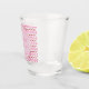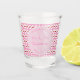 Dieses phantastische Schussglas weist ein Muster hübscher Rosa Kirschblüten-Blume auf, die auch Sakura und Japan genannt werden. Sie sind ein Symbol für den Frühling und ideal für eine Frühjahrshochzeit. Sie werden mit Paaren reifer, glänzender roter Kirschen vermischt. Es ist ein hellrosa Kreis mit weißen Marmormustern, der anpassbaren Text enthält, damit Sie dieses Design personalisieren können.