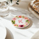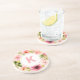 Eleganter Untersetzer-Design bietet einen wunderschönen Blumenhintergrund von Frühling Aquarellfarben Blume in Pfirsich, Rosa und Rosa, mit grünen Akzenten. Personalisieren Sie das moderne, rosa, benutzerdefinierte Monogramm-Initial, das in einem einfachen runden Rahmen zentriert ist.