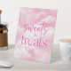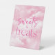 Dies ist ein rosa Funkelnd Wolken Süßigkeiten & Leckereien Party Pedestal Sign!