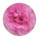 Die Gartenschönheit auf dieser runden Schneidertafel ist ein Originalfoto von MaeFlowers aus einer schönen rosa Gartenanlage Rose. Es ist eine Nahansicht, die die Blume weit offen zeigt, mit all ihren Blättern in zerknitterten Schichten. Die intensive rosa Farbe wird tiefer in der Mitte dieser üppigen Blüte. In den Ecken des Fotos kann man Teile der grünen Blätter der Blume sehen. Das ist ein Design für Liebhaber der Farbe Rosa.