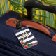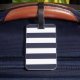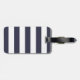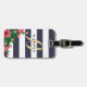 Marineblau- und weißergestreifter Gepäckanhänger mit rosa Gartennelken, Ihren Namen und die Initiale Ihrer Nachname kennzeichnend.