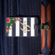 Rosa Gartennelken u. blaue Streifen Name u. Gepäckanhänger