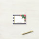 Personalisierte Post-Itanmerkungen mit einem Goldrahmen, rosa Gartennelken und blauen Streifen der Marine.