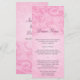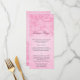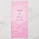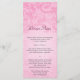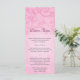 Das Blumenschrollwerk macht diese schöne rosa Hochzeitskarte zu einem einzigartigen Aussehen. Das Bild wird unten als Wasserzeichen wiederholt, um den maßgeschneiderten Hochzeitsmenütext auszugleichen. Das gesamte Bild wird auf der Rückseite auf eine andere Weise wiederholt, und darüber kann Text hinzugefügt oder entfernt werden. Ein eleganter und klassischer Look für einen besonderen Tag. Erhältlich in alternativen Farben mit passenden Produkten. com