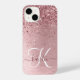 Rosa gebürsteter Glitzer Monogramm Name iPhone Hülle