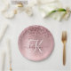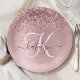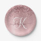 Rosa gebürsteter Glitzer Monogramm Name Pappteller