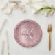 Rosa gebürsteter Glitzer Monogramm Name Pappteller