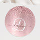 Rosa gebürsteter Glitzer Monogramm Name Runder Aufkleber