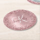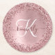 Rosa gebürsteter Glitzer Monogramm Name Runder Pappuntersetzer
