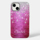 Niedliche hübsche Hot Pink Brushed Metal Silber Imitate Glitzer Monogramm I-Phone Gehäuse bietet modernen Glitzer Luxus Chic Girl Shimmer heiß rosa gebürstete Metall Silber Glitzer . Schönes, modernes und cooles Cover für Mädchen, die klassische funkelnd Designs genießen. Zeigen Sie Ihren persönlichen Stil, sehen Sie modern, trendig und fühlen Sie sich stilvoll mit einem einzigartigen Design auf einem mobilen Gerät Zubehör oder passen Sie es über ein anderes Produkt Ihrer Wahl. Fügen Sie Ihren Namen mit einer coolen und modernen kalligraphischen Typografie hinzu. Es ist die perfekte Geschenkidee für einen süßen 16 Geburtstag, Hochzeit, Brautparty, Jubiläen, Babyduschen oder Junggeselinnen-Abschied, Valentinstag oder als Geschenk im Allgemeinen.