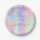 Rosa Geburtsname lila Glitzer holografischer Name Pappteller