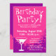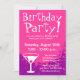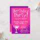Rosa Geburtstags-Party Einladungen | Gewohnheit lädt ein. Personalizable Mitteilungstext und Hintergrundfarbe. Cocktailglasentwurf mit Pinkfarben.