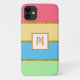 Für diejenigen, die Liebe Farben, ist dies ein elegantes gestreiftes Monogramm Handy Gehäuse mit einer Touch von goldenen Glitzer Linien.