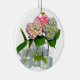 Rosa, gelb-blaue Hydrangeas in Mason-Glas Keramikornament