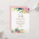 Elegante und farbenfrohe Rosa-, Blau- und Gelbfärbung der Aquarellblüte mit goldenem Glitzer an einer weißen 40. Party Einladung. Kontaktieren Sie uns für Hilfe bei der Anpassung oder um passende Produkte anzufordern.