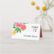 Lebhafte rosa Blume, gelbe Knötchen und grüne Blätter Aquarellfarben mit Tischnummern und individuellen Gästernamen auf diesen gefalteten Platzkarten. **HINWEIS: Erstellen Sie eine individuelle Platzkarte für jeden Gast und fügen Sie jeden zu Ihrer Einkaufskarte hinzu (kann nicht als Bulk erstellt werden). Die Namen des Ehepaares auf der Rückseite. PASSENDE Artikel in unserer Sammlung.