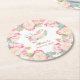 Rosa Gelb Einhorn Blütendusche Rundpapier Untersetzer - Adorabler und niedlicher Untersetzer mit rosa Einhorn, umgeben von gelben und rosa rosa Blume und grünem Blattwerk. Alle Texte sind so vorbereitet, dass Sie Ihre Daten schnell und einfach personalisieren können.