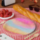 Rosa Gelbe Regenbogen Abstrakte Streifen Pappteller