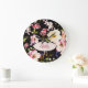 Rosa-gelbe Rosen in Aquarellfarbe auf schwarz, Mon Große Wanduhr