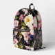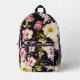 Rosa gelbe Rosen, schwarzer Hintergrund Bedruckter Rucksack