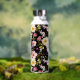 Rosa gelbe Rosen, schwarzer Hintergrund Trinkflasche