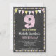 Eine funky Chalkboard Rosa und Gelb-Einladung zum 9. Geburtstag mit einem kreidigen Kreidetext oben mit Kalkboard-Hintergrund, Flaggen und einem niedlichen Polka-Dot-Rahmen.