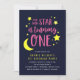 Rosa Gelber Mond und Sterne Einladung zum 1. Gebur