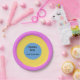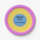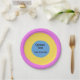 rosa gelbes, hellblaues, lebhaftes Design, benutze Pappteller