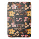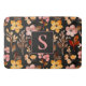 Stilvolle Blume und Blätter in den Farbtönen blau, orange, gelb und rosa auf schwarzer Badematte, die mit Ihrem Monogramm/Initial abgestimmt ist.