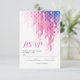Rosa geometrische Dreiecke moderne Hochzeitskorrespondenz- oder Antwortkarte mit abstrakten geometrischen Dreiecken in Rosa, Blau und lila. Dieses zeitgenössische Hochzeitsdesign ist ein vollständig anpassbarer Template-Design Teil einer Hochzeitskollektion oder Set und ist ideal für eine Frühjahr- und Sommerhochzeit.