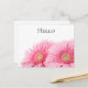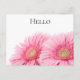 Eine hallo Postkarte mit einem Foto eines Paars rosa Gerbera. Elegant und stilvoll.