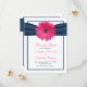 Rosa Gerbera mit Navy Ribbon Save the Date Card
