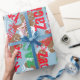 Rosa Land-Weihnachtslebkuchen-Geschenk-Verpackung mit blassem em-grün, Weiß und Rot. Ändernde Namenscollage in den Farben Ihrer Wahl. Lassen Sie jemand mit personalisiertem Verpackungspapier mit allen möglichen Namen ganz speziell sich fühlen, die Sie wählen. Art "der frohen Weihnachten" gerade ihr Name. Klicken fertigt, redigiert besonders an, um Hintergrundfarbe zu ändern. Schablone des einfachen Namens und der Mitteilung oder addieren Fotos, um sich besonders anzufertigen. Kundenspezifischer Geburtstag, Glückwünsche, Weihnachten, heitres, glückliches, Spaß und festliches. Snowy-Shabby Chic, altmodischer Lebkuchen und Schneeflocken.