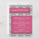Trendste und moderne Einladungen für Ihr Valentinstag Party oder Ihre Ansammlung. Das schwarz-rosa gesteppte Design/die Darstellung über einem schwarz-weißen Damaskusmuster. Auf der Rückseite können zusätzliche Informationen oder Anweisungen zum Party gedruckt werden (optional).