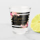 Watercolor-Rosa erröten mit Blumen mit Schwarzweiss-Streifen-Junggeselinnen-Abschieds-Schuss-Glas - Goldskript-Text