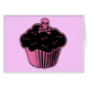 Dieser niedliche rosa kleine Kuchen hat einen Schädel auf ihm anstelle einer Kirsche.