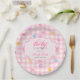 Rosa Gingham Blumen-Schleife Baby Shower Papier-Te Pappteller