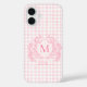 Blush Pink Gingham Floral Wappen Monogram iPhone 16 Fall