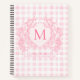 Rosa Gingham Floral Wappen Monogram Notizbuch