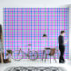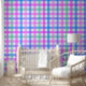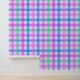 Dieses Design zeichnet sich durch ein klassisches Gingham-Muster in Rosa, Blau und Grün aus.
