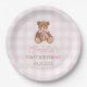 Rosa Gingham-Teddybär Beary Erster Geburtstag Pappteller