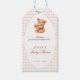 Rosa Gingham Teddybär Neutrale Babyparty Geschenkanhänger