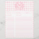 Rosa Gingham Bloral Wappen Monogram Rezept Blatt