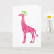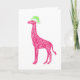 Rosa Giraffe mit grüner Weihnachtsmannmütze Karte