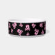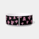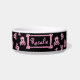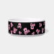Diese kundenspezifische Keramikhaustierschüssel hat miserabelen rosa girly Schädel und gekreuzte Knochen ganz über ihr. Es wird um den Teller wiederholt. Es ist mit einem rosa Bogen auf dem Schädel rosa. Die Mitte hat Raum für den Ihren Namen des Haustieres in der Schablone. Klicken fertigt besonders an, um die Hintergrundfarbe oder -Schriftart zu ändern.