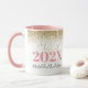 Rosa moderne stilvolle Abschluss-Klasse der Gutes Geschenk Tasse. Modern auf Trend fett formatiert Typografie und Skripttext. Teil einer eleganten Goldeffekt-Glitzer-Kollektion.