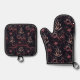 Rosa Glitzer-Blume und Blätter Monogramm Ofenhandschuh & Topflappen-Set